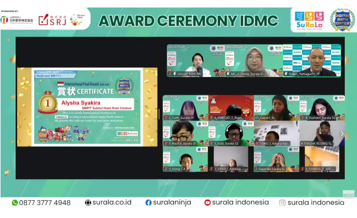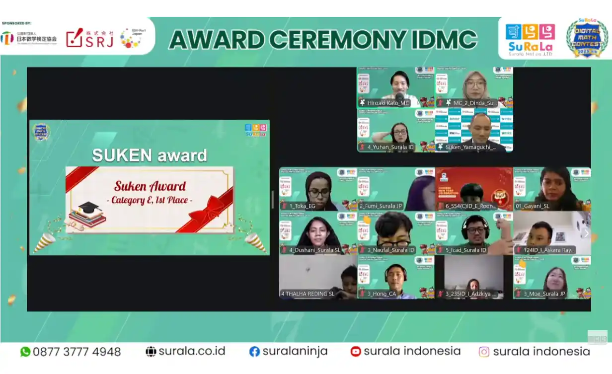 【公益財団法人 日本数学検定協会】 国内外6か国の児童・生徒約3,400人が算数力を競い合う「すらら国際デジタル算数/数学コンテスト2025」で中学校2年生部門の優勝者に「SUKEN Award」を贈呈いたしました。