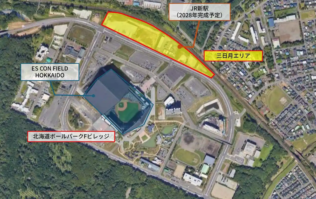 「ES CON FIELD HOKKAIDO」が位置する北海道ボールパークFビレッジ(以下「Fビレッジ」)周辺では、2028年夏頃にJR千歳線新駅の開業が控えており、札幌エリアや新千歳空港からの交通利便性の飛躍的な向上が見込まれています。また、Fビレッジでは、北海道医療大学の移転(2028年4月予定)や、当社が球場近接地にて開発を進めるホテル(2027年秋頃開業予定、ホテルブランド『DHAWA』)をはじめとする新たな開発が進んでいることから、更なる賑わいや発展が期待されます。 |