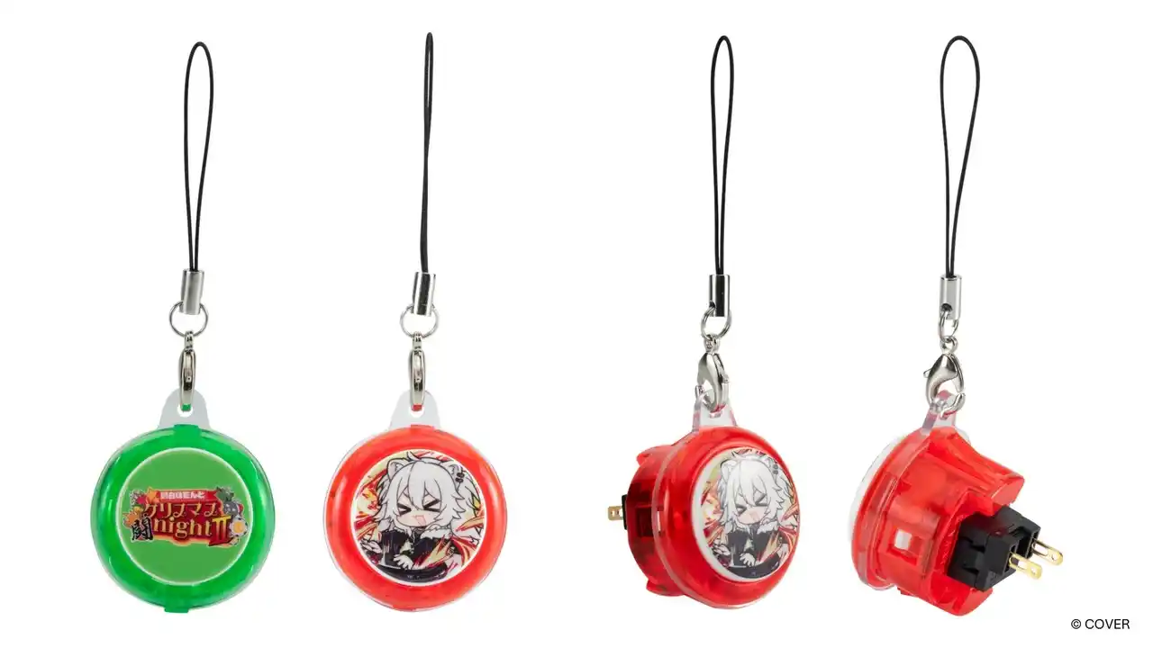 獅白ぼたんとクリスマス闘night II 30Φアケコンボタン(赤 / 緑)(ストラップ部含む 約33.6×107×32.7mm)各1,650円 |