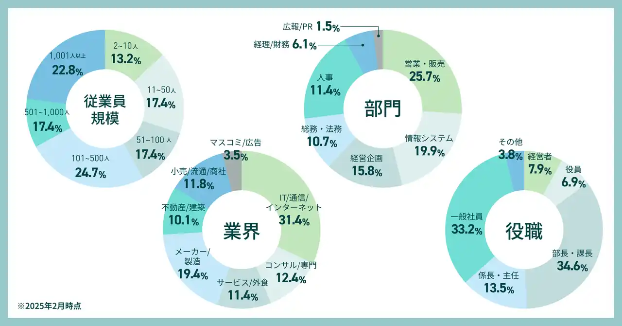 「BOXIL」の会員は部長・課長以上の役職者が約半数を占めています。また、従業員規模1,000名以上の大企業に所属している会員が22.8%、業界では、IT/通信/インターネットが31.4%を占めています。 |