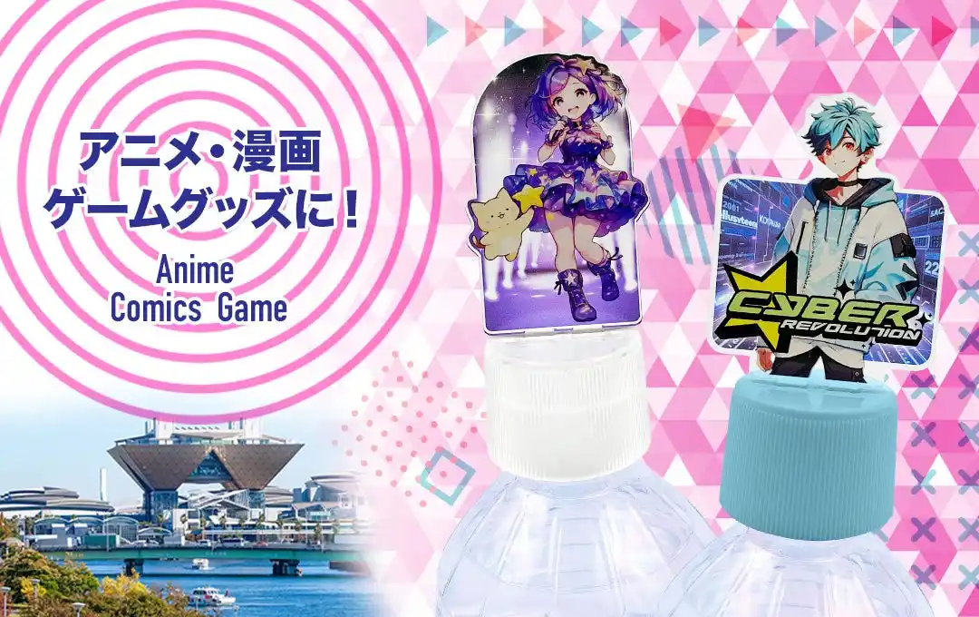 アクスタ本体をキャップに差し込むだけで、ペットボトルそのものをスタンド台座として使えます。もちろん、ボトルキャップアクスタだけでも飾ることができます。 キャラクター・アイドル・スポーツ選手など、多彩な作品世界を表現でき、イベント物販やコラボグッズとしても注目度の高いアイテムです。 |