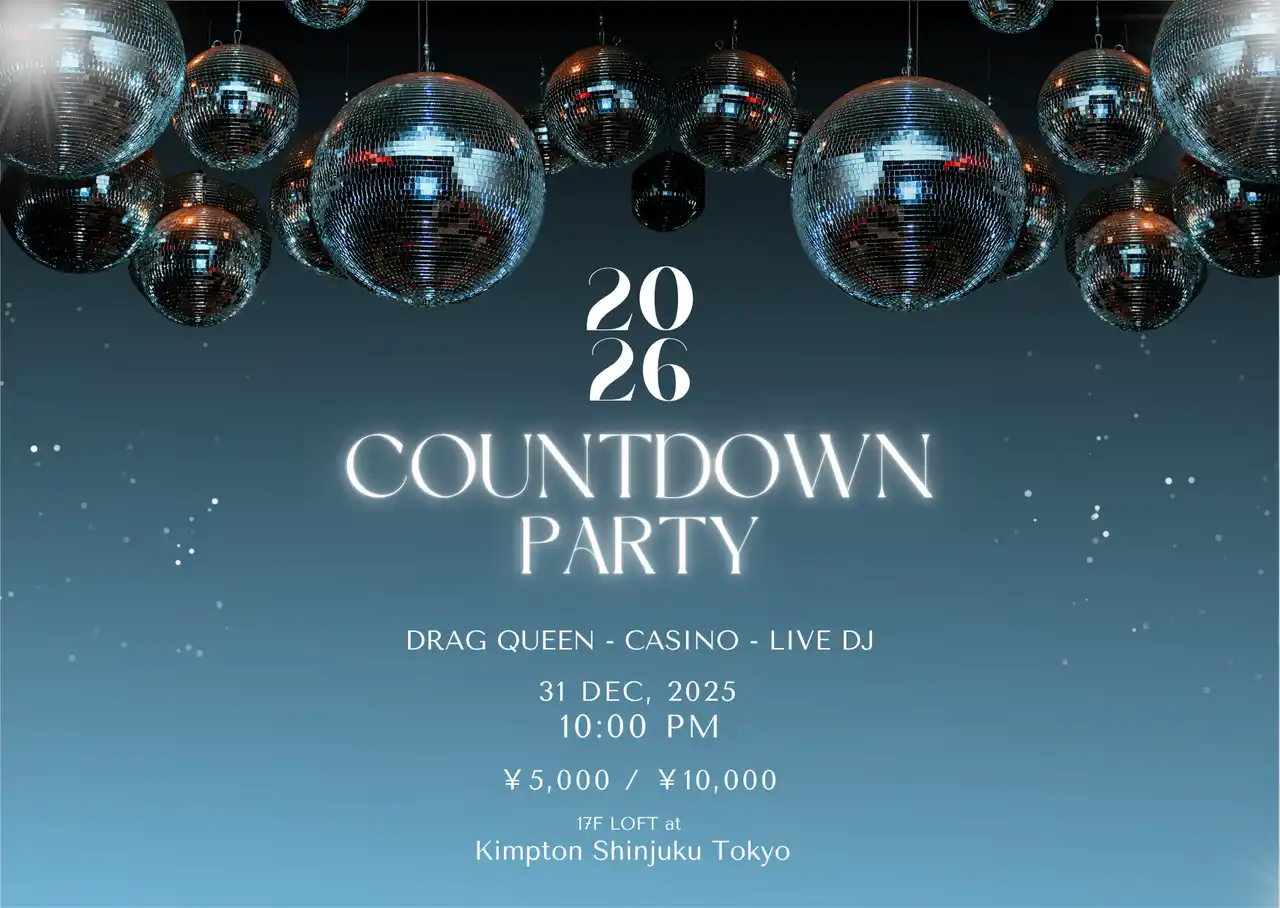 | 2020年のブランド日本初上陸から5周年を迎える“とんでもなくパーソナルな体験”をお届けするラグジュアリーライフスタイルホテル「キンプトン新宿東京」では、2025年12月31日(水)22時より 最上階17階のロフトにて「カウントダウンパーティー 2025-2026」を開催します。今年のテーマは “Drag Queen×Casino×DJ”! ホテル最上階の煌めく会場で、ドラァグショー、カジノゲーム、DJミュージックが織り なす刺激たっぷりのカウントダウンをお楽しみいただけます。当日は、スパークリングワインや様々なカクテルなどのドリンクに加え、6種のカナッペ&スイーツに年越しそばを取り揃えております。新しい一年の幕開けを、東京の中心で華やかでスタイリッシュにお迎えいただけます。 | |||