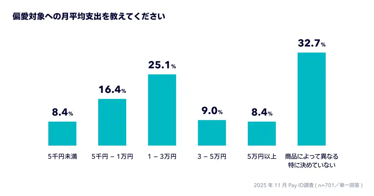 | この度「Pay ID」は、「Pay IDアプリ」のユーザーを対象に、「偏愛消費」の独自調査を実施いたしました。「偏愛消費」は、個人の偏愛性から発生する消費行動で、特定の物への強い愛やこだわり(=偏愛)にまつわるショッピングを指します。「Pay ID」はユーザーの”好き”が買えるサービスとして、ユーザーの偏愛をきっかけとした購買行動の実態を公開することで、”好き”を起点としたショッピングの広がりを後押ししていきます。 | |||||||||||||||