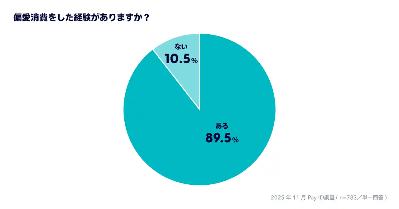 | 偏愛消費の経験に関する設問では、「ある」と回答された方が89.5%で約9割という結果になりました。 | |||||||||||||||