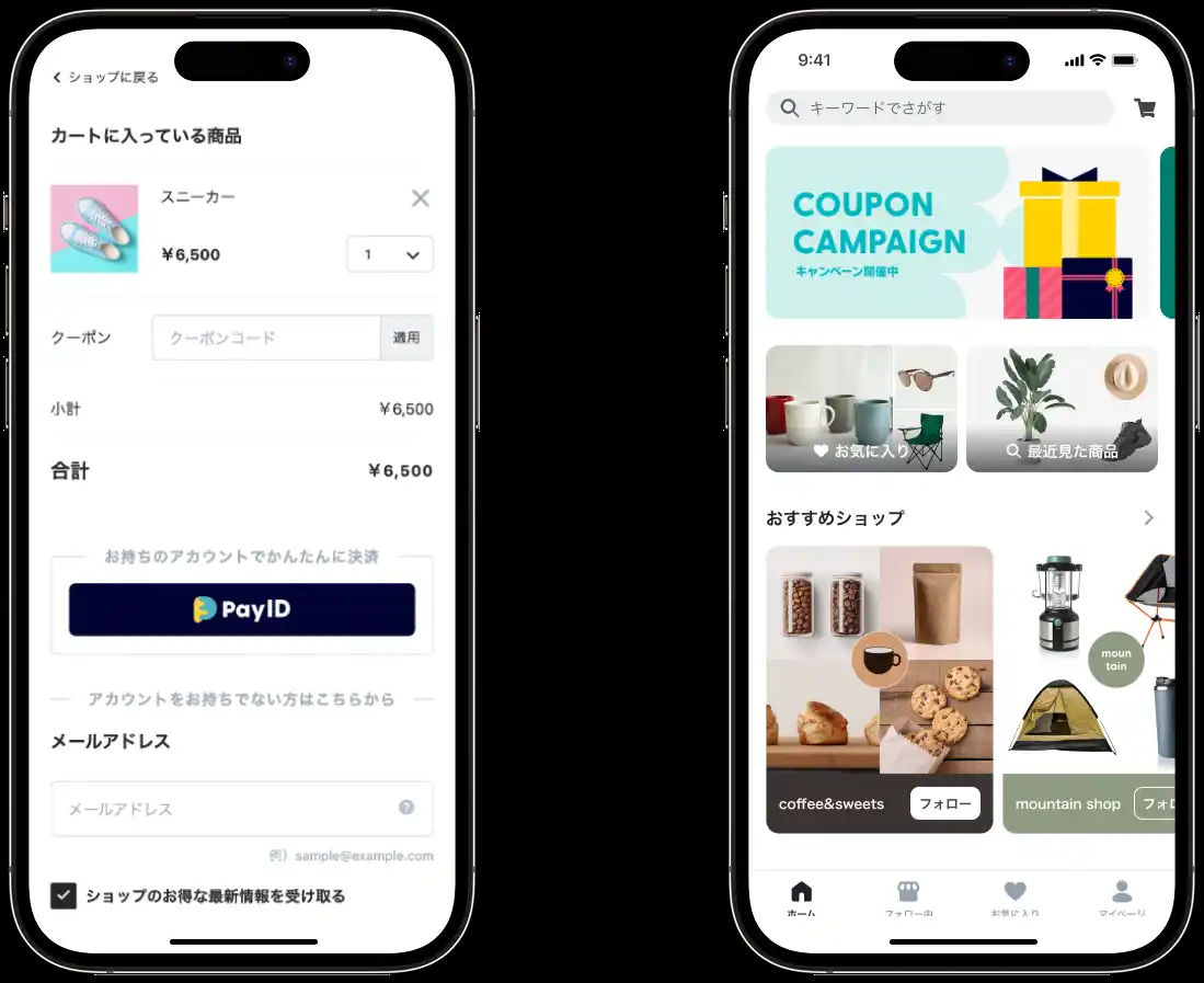 <Pay IDアプリ> ファッション、ハンドメイド、インテリア、食べ物・飲み物(野菜や果物等の農産物、肉・魚等の生鮮食品も含む)、エンタメ・ホビー、スポーツ・レジャー、家電・スマホ、コスメなど、幅広いジャンルの商品を探したり、好きなショップをフォローしてショッピングをお楽しみいただけます。 フォローしたショップの最新情報や入荷情報がわかりやすく、一度購入したショップでのリピート購入がスムーズにできる仕様になっています。 |