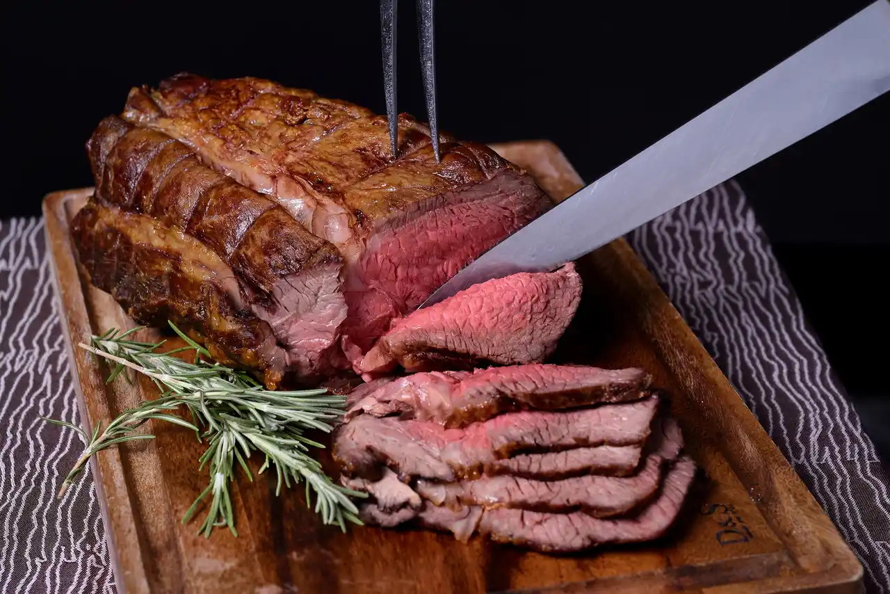 シェフが目の前で切り分ける、レフォール香るローストビーフ |