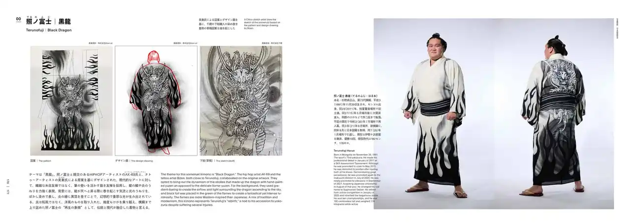 書籍『相撲とデザイン SUMO and DESIGN』は、相撲界ならではの衣装である「化粧まわし」と「染め抜き着物」をテーマにした衣装デザイン&アートブックです。 |