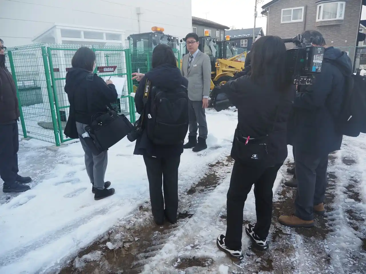 続いて、設置されたマルチハイブリッドシステムの実機を前に、導入に至った経緯やシステムの特長について報道関係者向けに説明を行いました。会場には複数の報道関係者が集まり、今回の導入意義や今後の展開について多くの質問が寄せられるなど、高い関心が示されました。 |