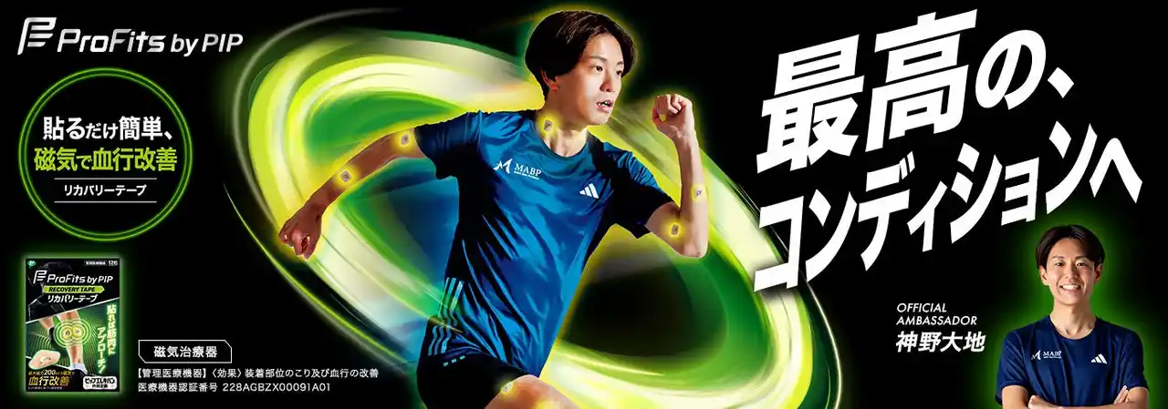 | ピップ株式会社(本社:大阪市中央区、代表取締役社長:松浦由治)のスポーツケア用品ブランド「プロ・フィッツ」の新オフィシャルアンバサダーに、プロランナー/MABPマーヴェリック選手兼監督の神野大地さんが就任したことをお知らせします。12月18日(木)より順次、「プロ・フィッツ」のブランドサイトや店頭などに、神野大地さんが登場します。 | |||||||||||||||||||