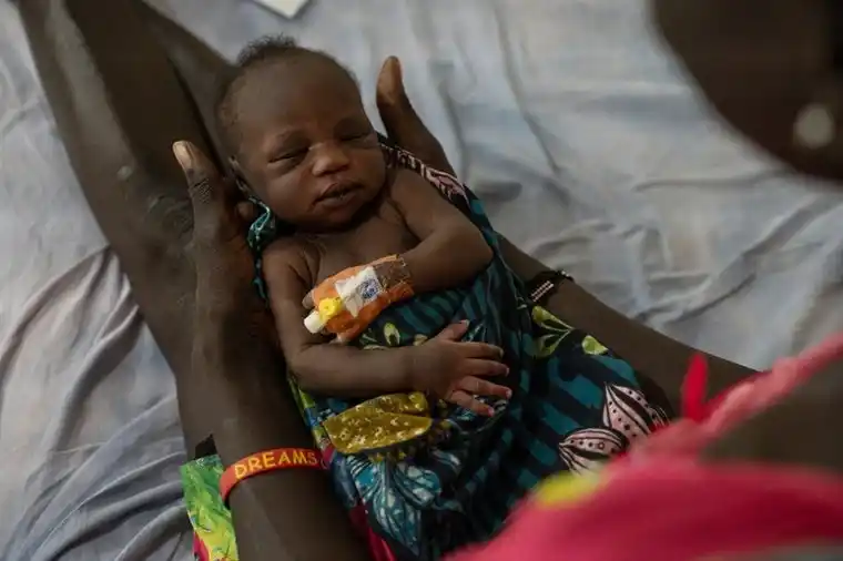 ウラン病院の新生児集中治療室で治療を受ける赤ちゃん。「病院に行くまで6日間船を待った」と母親は話す。病院はその後閉鎖を余儀なくされた=2025年2月7日 (C) MSF |