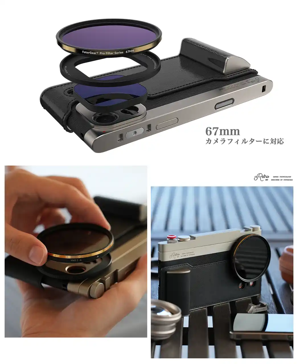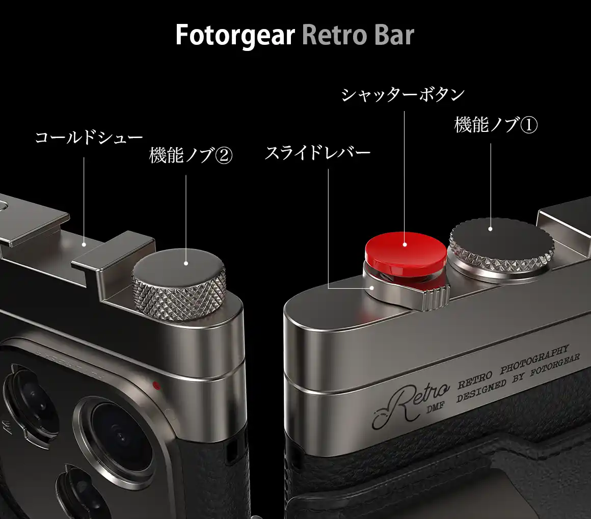 「Fotorgear Retro DMF」は、iPhoneの圧倒的な画質を最大限に引き出すために設計された、革新的な撮影ギアです。 アルミ合金製の堅牢なフレーム、手に馴染むレザーの質感、そして物理シャッターボタンとダイヤル操作。これらを装着するだけで、あなたのiPhoneは単なるスマートフォンから、「撮る悦び」を感じられる本格的なカメラへと進化します。 |
