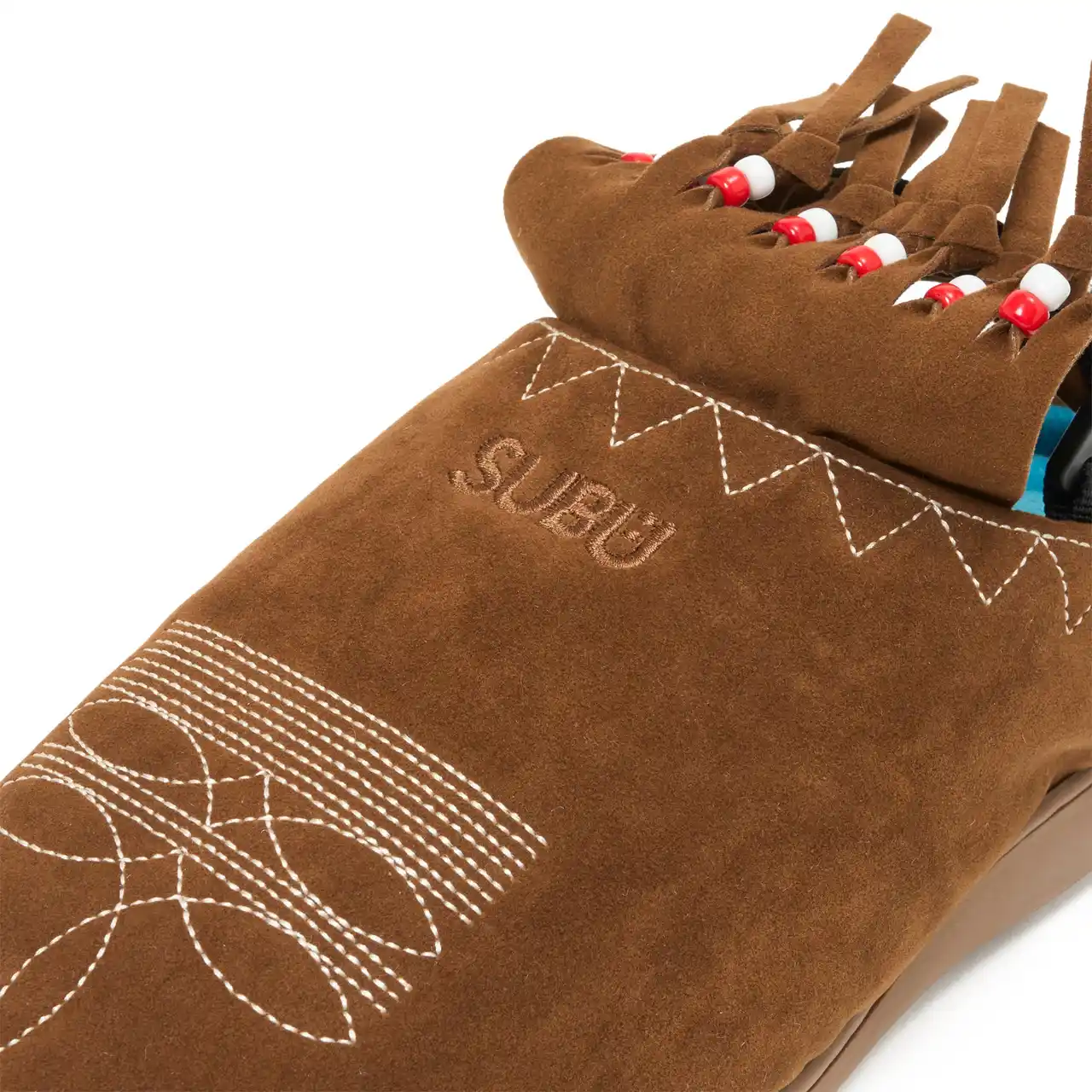 | 当時のネイティブアメリカンたちが、現代の技術によって最高の履き心地とクッション性を実現したSUBUを履いたらどう思うのか?と想像しながら製作した遊び心溢れるアイテムです。 | |||||||||||||||||||