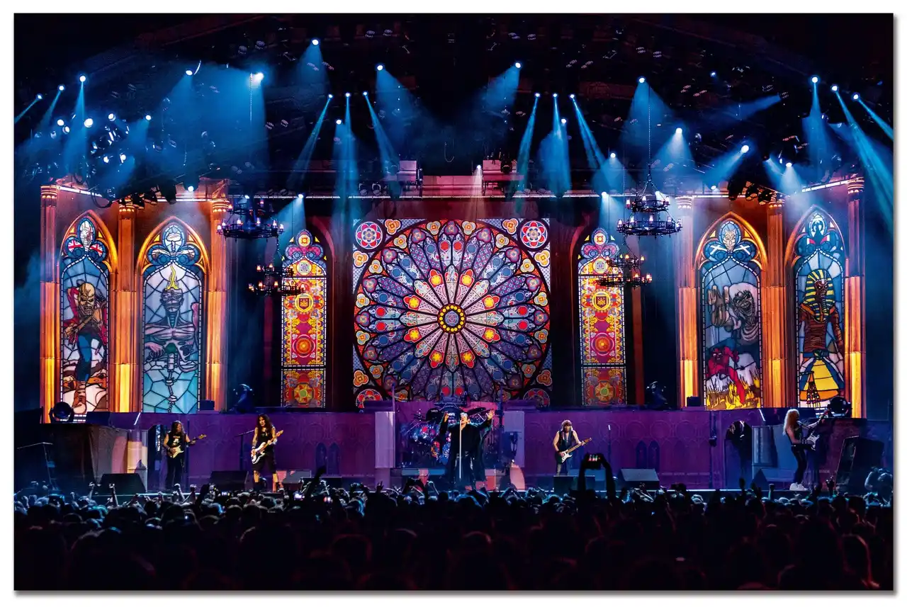 「レガシー・オブ・ザ・ビースト・ツアー」でのステージセット(2018年のストックホルム公演より)。メイデンの歴史をたどるこのライブではさまざまなバージョンのエディがよみがえった。 |