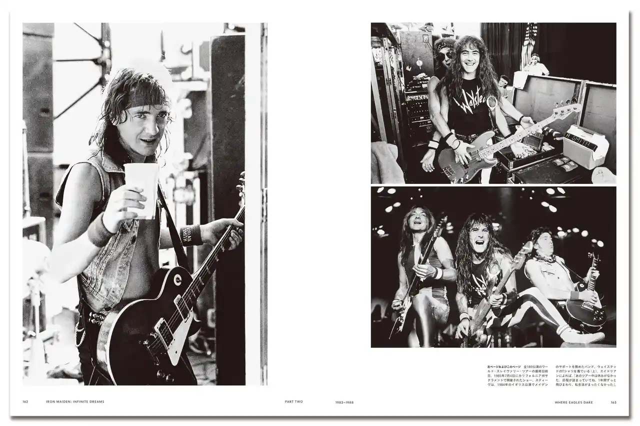 本書『アイアン・メイデン オフィシャル・ビジュアル・ヒストリー』には、初来日時に新宿西口の街頭で撮影したレアショット、1987年5月「サムホエア・オン・ツアー」での来日時に撮影した大阪道頓堀での写真(後にドキュメンタリ-『12 Wasted Tears』ジャケットに使用)、スティーヴとデイヴ・マーレイが日本への思いを語った『Maiden Japan』レビューなどなど、50年にわたるバンドのキャリアと日本との密接な関係、アイアン・メイデンが日本によせる激しく燃え続ける鋼鉄魂が随所に刻み込まれています。 |