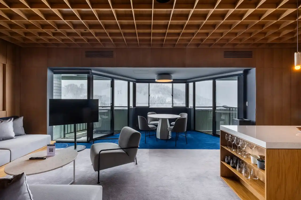 ファミリーやグループに最適な広々としたリビング、長期滞在にも対応できるキッチン・ランドリー設備、高速Wi-Fiなどを備え、これまでの旅館・ホテルのような宿泊施設とは異なる自由度の高い滞在スタイルを提供します。ワーケーションや、ファミリーの“雪遊び中心のゆったり旅”にも対応できる柔軟な利用が可能です。(料金 55,000円~/1室・1泊 ※2泊以上の宿泊が必須となります) |