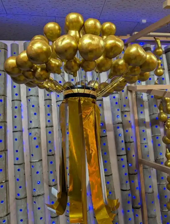 | ・既存展示の和傘・竹ランタンの一部を継続展示、和傘×竹灯り×瓢箪による和の空間を演出 | |||||||||