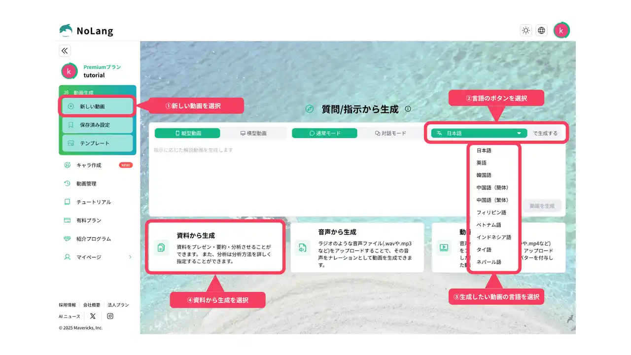 日本発・国内最大級(※1)の動画生成AIサービス「NoLang(ノーラン)」を提供する株式会社Mavericks(本社:東京都文京区、代表取締役社長:奥野 将太)は、企業のグローバル展開を強力に支援するため、日本語の資料(PDF/PPTX)から全18言語(英語、中国語、スペイン語等)の動画を即座に自動生成する新機能をリリースいたしました。 本機能は、ただ言語を翻訳するだけでなく、営業担当者自身の姿と声を再現した「AIアバター」および「クローンボイス」を活用することで、まるで本人が現地語でプレゼンテーションを行っているかのような動画を作成可能です。これにより、従来海外営業の課題であった「言語による壁」「時差による商談ができないことの機会損失」「商談やプレゼンにかかる通訳コスト」などを解消します。 |
