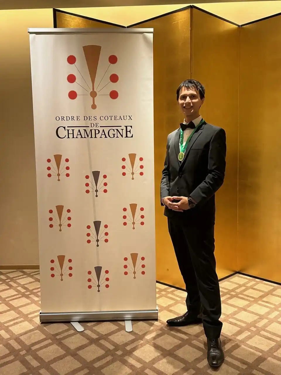| 【2025年12月19日(金)】コンラッド大阪(大阪市北区中之島、総支配人 レオ・フランクル)の料飲部アシスタントディレクターのアジュート ミカエル (Adjoute Michael)は、2025年10月17日(金)、フランス シャンパーニュ地方の名門『シャンパーニュ騎士団 (Ordre Des Coteaux De Champagne)』より、「シュヴァリエ」の称号を叙任されました。本叙任は、シャンパーニュの名門メゾン「メゾン・テルモン」の推薦に基づくものです。 | |||||||||