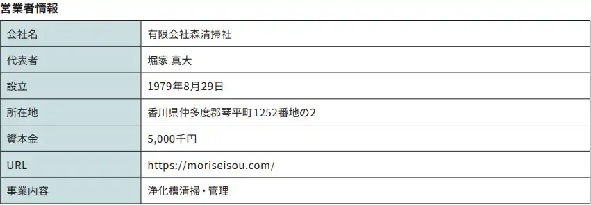 香川県琴平町にて約80年前に創業した森清掃社。同社は、地域の水環境を守る存在として、浄化槽の維持管理・清掃や排水管高圧洗浄などを通じて地元のかたがたから厚い信頼を得てきました。近年、老朽化した下水管が原因で道路陥没事故が起きるなど全国各地で水インフラの問題が発生している中、下水道の維持や更新に今後30年間で約38兆円もの費用が必要といわれており、財政的な負担などから複数の自治体が下水道から浄化槽への転換を図り始めています。このように、国内での浄化槽活用のニーズが増加する兆しがある一方で、維持・管理する浄化槽管理士の人材不足と高齢化が業界全体の課題となっています。 |