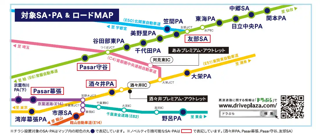 ※ノベルティ引換対象SA・PAは以下のみ(上下線対象): |