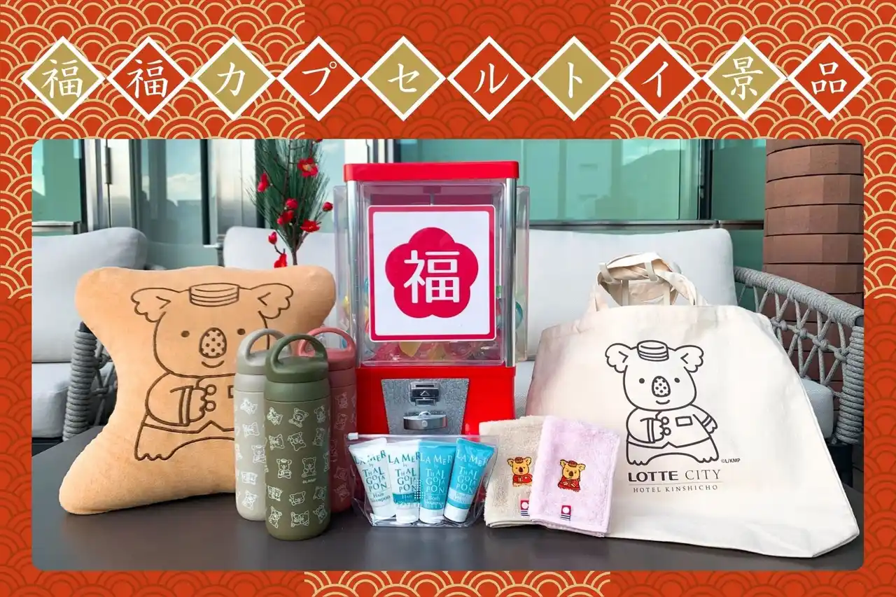 | ロッテシティホテル錦糸町(所在地:東京都墨田区錦⽷4-6-1、総支配人:福井朋也)は、年末年始をホテルで過ごすお客さまに向けて販売中の「【12月31日限定】福いっぱい!新春福づくしステイ~特別朝食ビュッフェ付き~」の特典「ホテルオリジナル福福カプセルトイ」の景品が決定したことをお知らせいたします。 | ||||||||||||||||||||||||