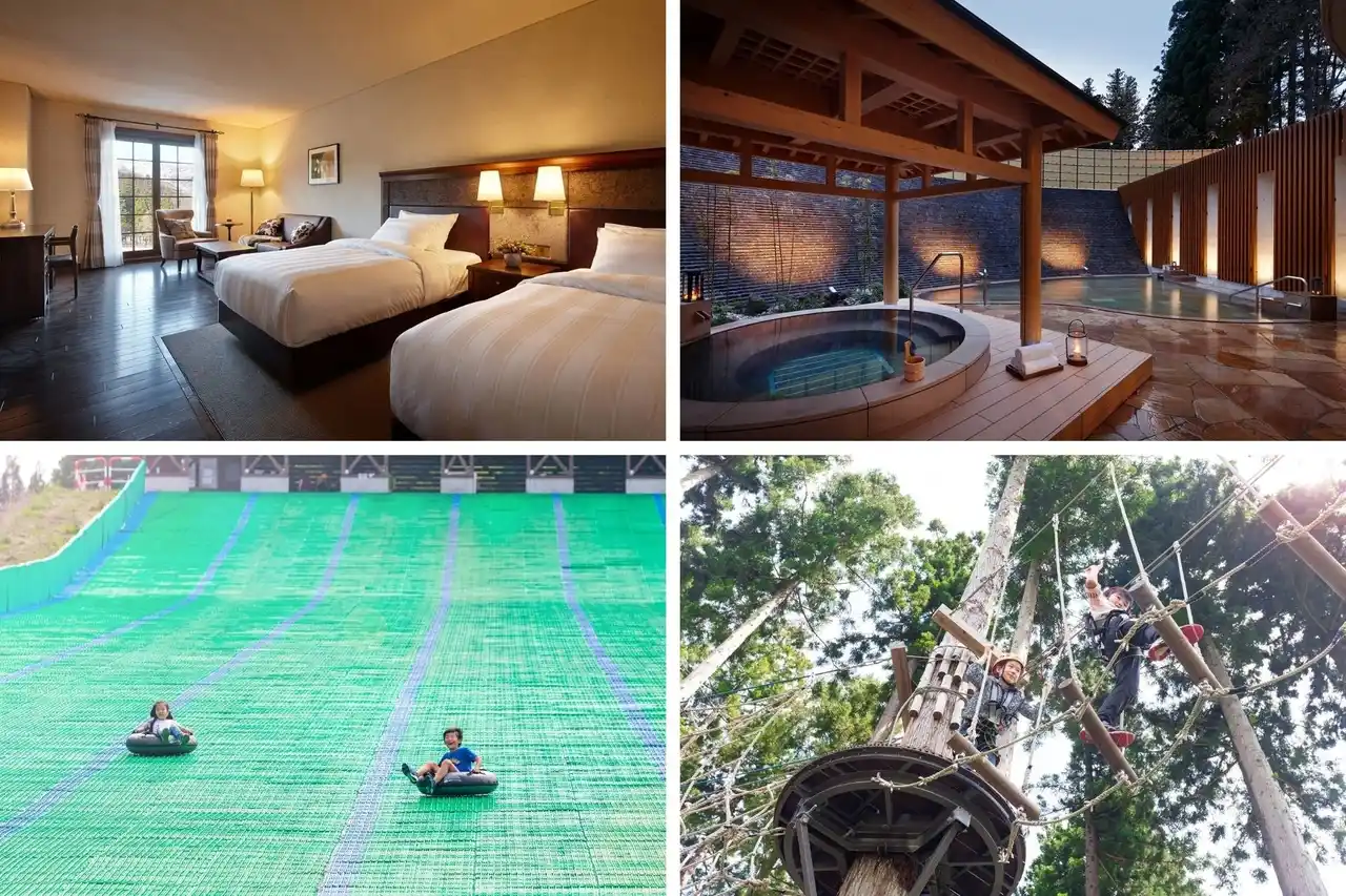 | 敷地内では、全14コースを誇るスキー場をはじめ、アジア最大級の全長1,501mのジップツアー、ツリーアドベンチャー、スパ、プール、レストラン、カフェ、ファンクションルームなど、多彩なアクティビティと施設が充実しています。グリーンシーズンには新緑と澄んだ空気に包まれながら、雄大な山並みをお楽しみいただけます。また、天然温泉「星空温泉」では、満天の星を眺めながらゆったりとしたひと時をお過ごしいただけます。日常を離れ、自然豊かなリゾートで心安らぐ特別な時間をお過ごしください。 | ||||||||||||||||||||||||