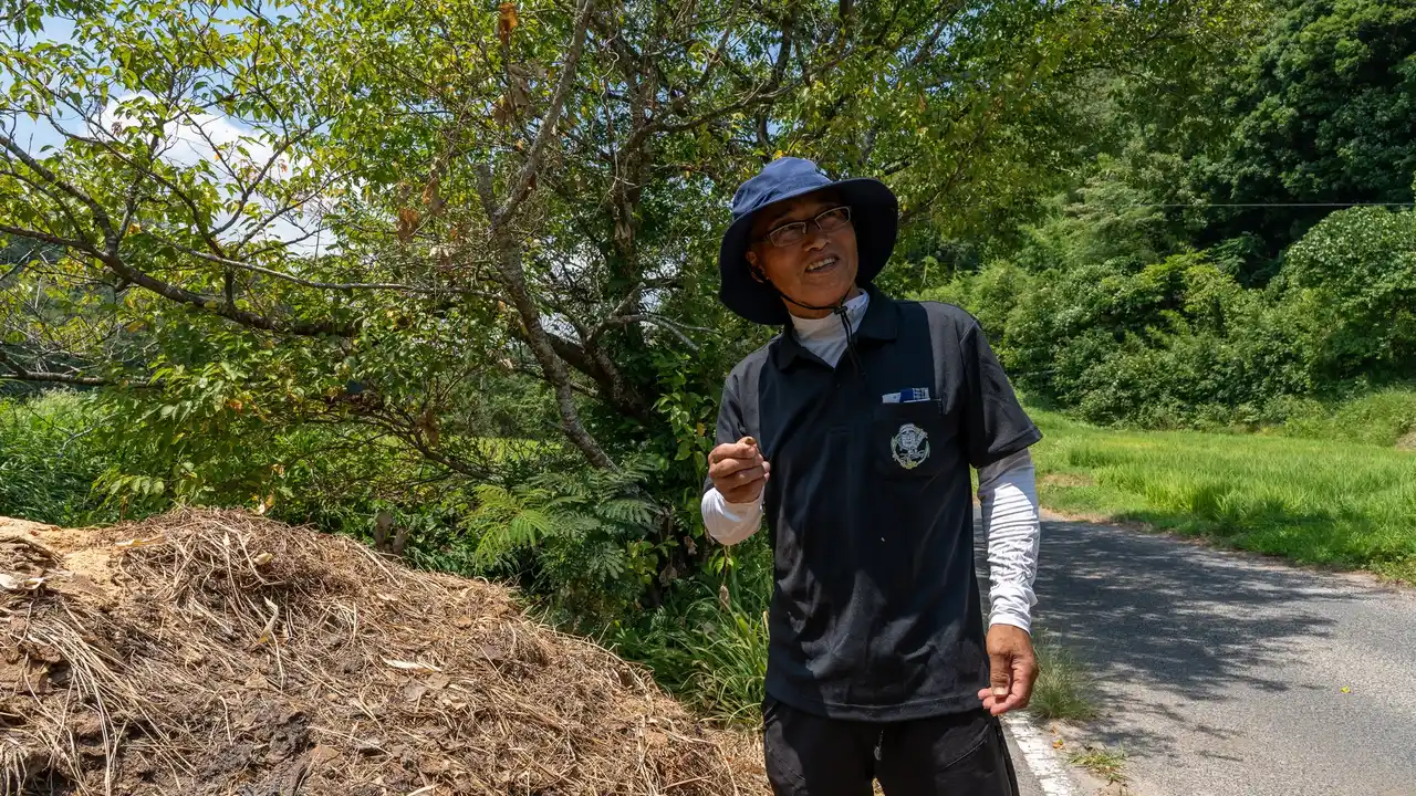 農薬や化学肥料はもちろん、動物性堆肥も一切使用しない。刈り取ったアゼ草と、地元の醤油屋さんの搾りかすを発酵させた自家製堆肥を使用することで、土中の微生物を活性化させる。 |