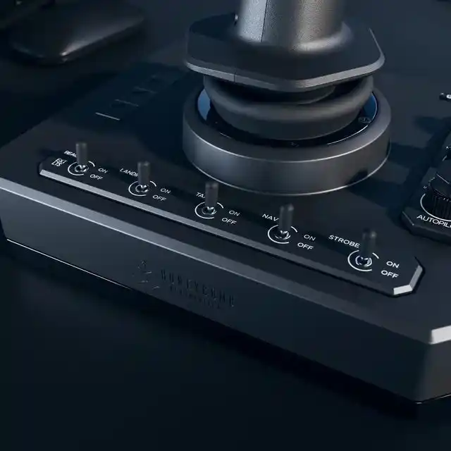 「Foxtrot Aviation Stick(フォックストロット アビエーション スティック)」(HC003363)は、エアバスジェットやアクロバット機など、スティック操作式航空機を操縦する愛好家のために設計されたプレミアムフライトスティックです。ジョイスティックには、POVスイッチ1個、アクションボタン4個、ロッカースイッチ2個、精密トリガー、ラダー操縦用左右ツイスト機構を搭載し、調整可能なテンションと中央戻り止め機構のない滑らかで一貫した動作により、あらゆる操作で現実的なハンドリングと精密な制御を実現します。 |