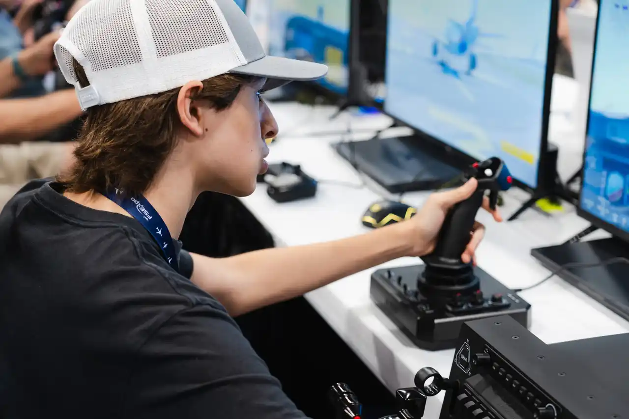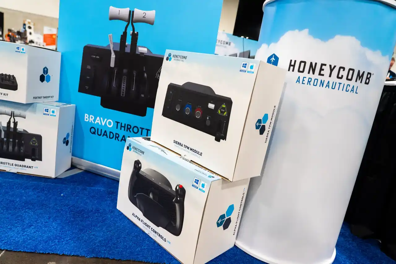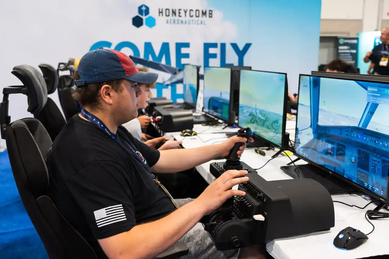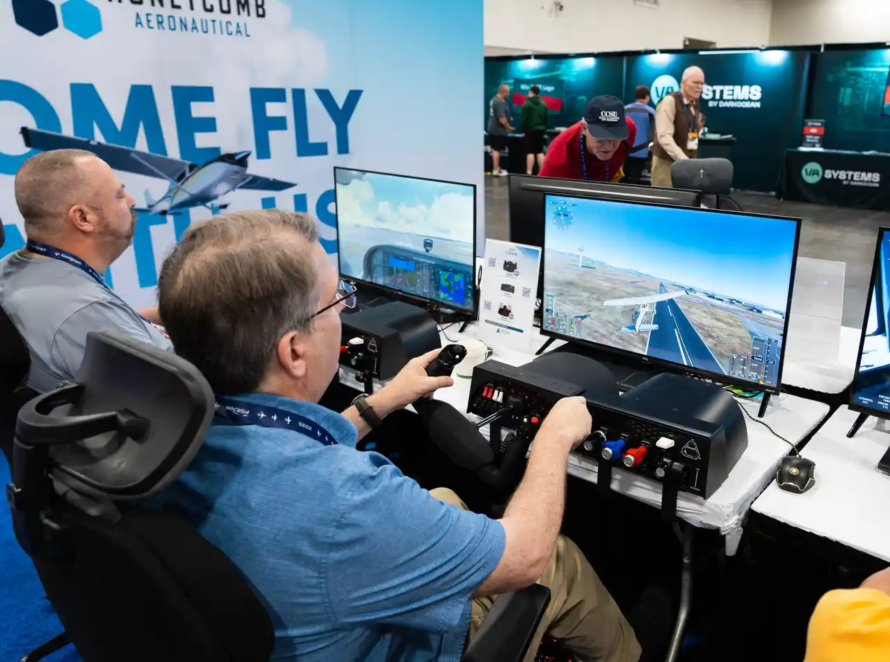 北米最大級のフライトシミュレーションの祭典 FlightSimExpo 2025 における ハニカム エアロノーティカル 新商品デモ試遊の様子 |