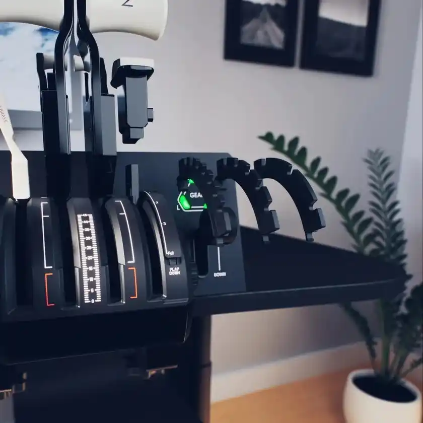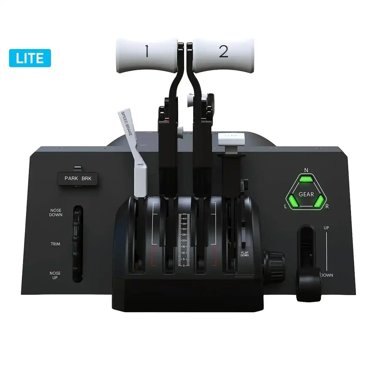 「Bravo Throttle Quadrant LITE(ブラボー スロットル クアドラント LITE)」(HC003790)は、コンパクトでシンプルな設計ながら、4つの大型交換可能レバーと調整可能なテンションにより、単発一般航空機から双発機まで幅広い機体構成に対応、パーキングブレーキ機能、トリムホイール、交換式フラップデテントインレイ、ランディングギアも備えています。 |