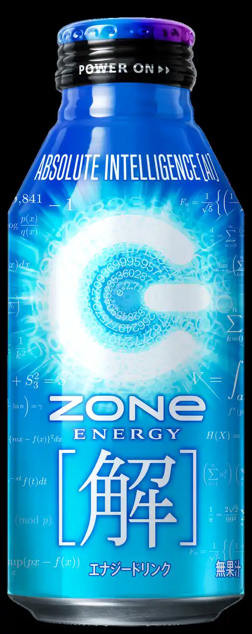 | 「ZONe ENERGY [解]」は、受験や勉強に向き合い、不確実な日々の中、答えを探し求めているすべての方々に無敵の[解]を授けるエナジードリンクです。従来の熱を帯びた受験応援とは異なる商品をお届けできればと思い、受験期に解を求めてAIを駆使し、スマートに勉強に臨む方が多いことに着目し、開発しました。正面には、答えを示唆するような大きな[解]をあしらい、缶上部に“Absolute Intelligence [AI]”と記載。また、クリアなブルーの背景に、無敵の[解]にちなんだ数式をらせん状に配することで、全体的にスマートさを感じられるデザインに仕上げました。 | |||||||||||||||