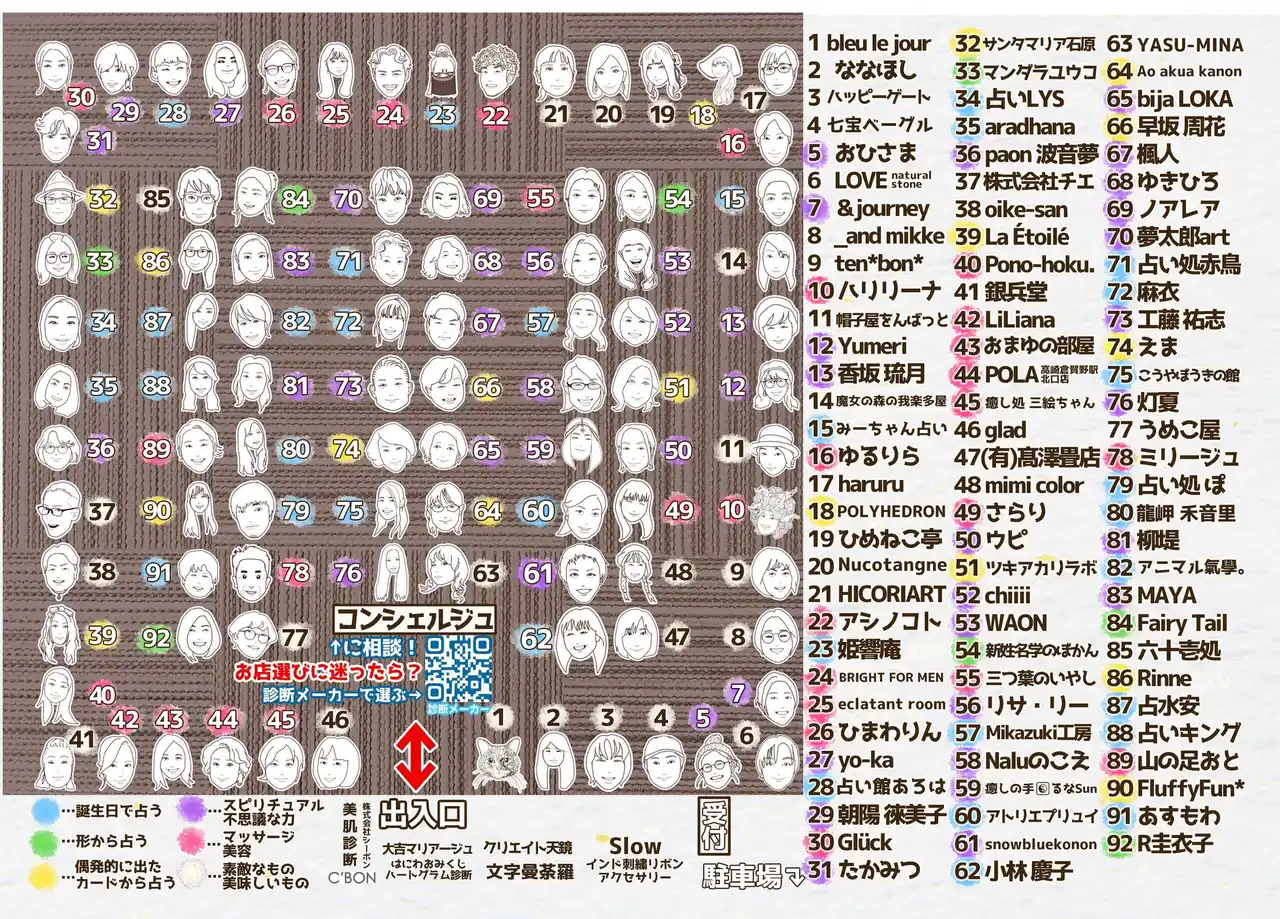 占いというと怪しい雰囲気を感じるかもしれません。当イベントは出店者の似顔絵を使用し、参加者の方が占い師へ親しみを持てるようにしています。