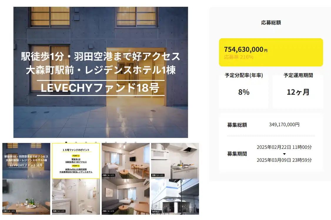 「LEVECHYファンド18号」は、12ヶ月の運用期間を想定しておりましたが、早期の売却が実現し、実際の運用期間は256日となりました。 |