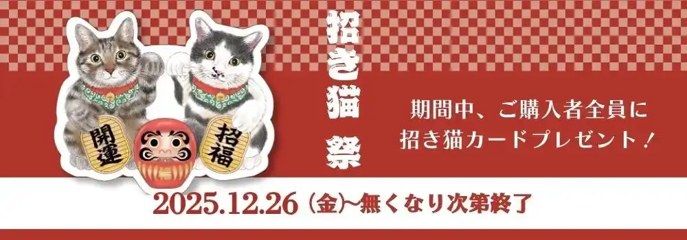 年末年始のご挨拶に使える「招き猫カード」を同梱するフェアを実施します。 |