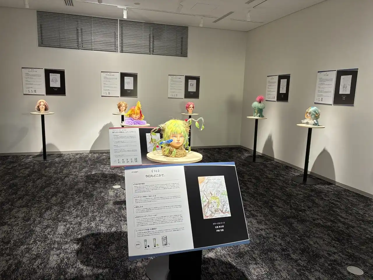 本展は、2025年6月~11月にかけて中日美容専門学校で行われたヘアデザインコンテストの受賞作品を制作エピソードやヘアカラーへの思いなどとともに展示した企画展で、今回が2回目となります。 |