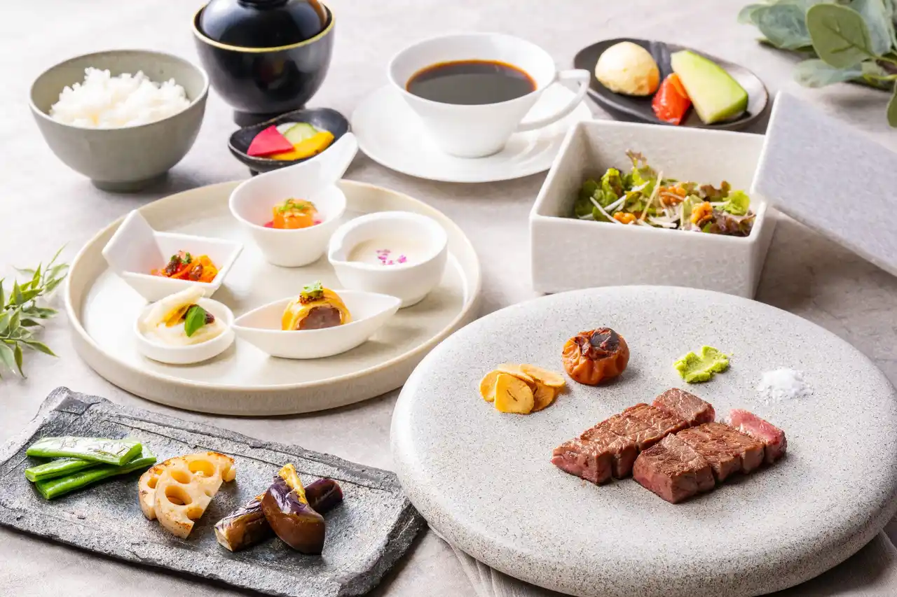 調理長が厳選した銘柄牛、市場から直送される新鮮な海鮮、そして日本各地の旬を映す直送野菜、これらの選りすぐりの食材を熟練の技で最上級の鉄板料理へと昇華し提供、またソムリエが厳選した多様なアルコール、料理との相性を極めたペアリングドリンクセットとともに心ゆくまで堪能できる。 |