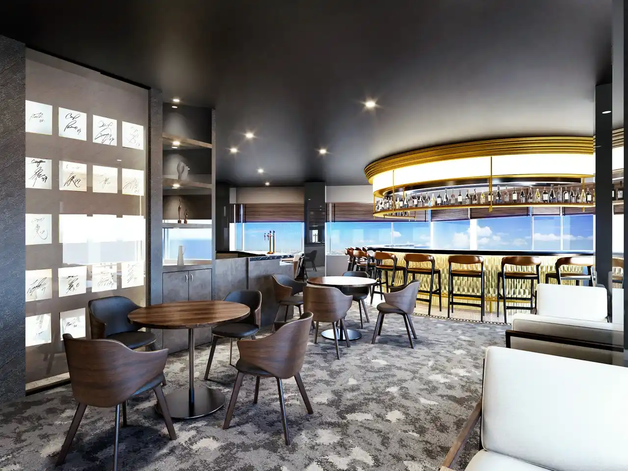 ・オーシャンビューラウンジ:ゆったりとした32席のラウンジを完備。 |