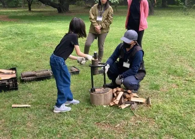 | 公園の樹木を剪定したときに発生した木材や間伐材(かんばつざい)などを使い、「薪割」や「火付け」の体験ができるミニプログラムです。道具の使い方なども学んでいただくことができます。スタッフがわかりやすくレクチャーしますので、アウトドア初心者の方にもおすすめ! | |||||||||