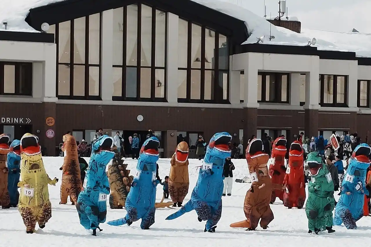 大人気の「ティラノサウルスレース」が今シーズンも1月に開催決定。恐竜の着ぐるみでゲレンデを駆け上げるユニークなレースは、参加する人も、応援する人も大盛り上がりです。さらに、ご家族でご参加いただける「雪だるまを作ろうイベント」は1月と2月の2回開催予定。技自慢のスノーボーダーが集う「グラトリ大会」は3月開催予定など、多彩なイベントを実施します。開催日や詳細はスキージャム勝山公式HPにて随時発信いたします。 |