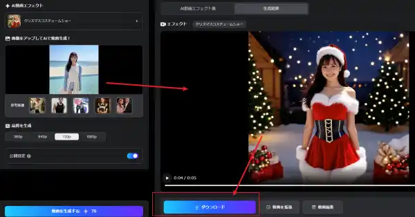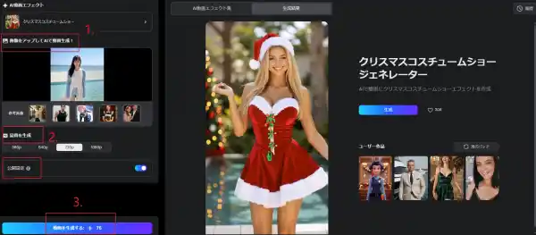 クリスマスコスチュームショー:https://jp.topmediai.com/app/video-effects/christmas-costume-show/