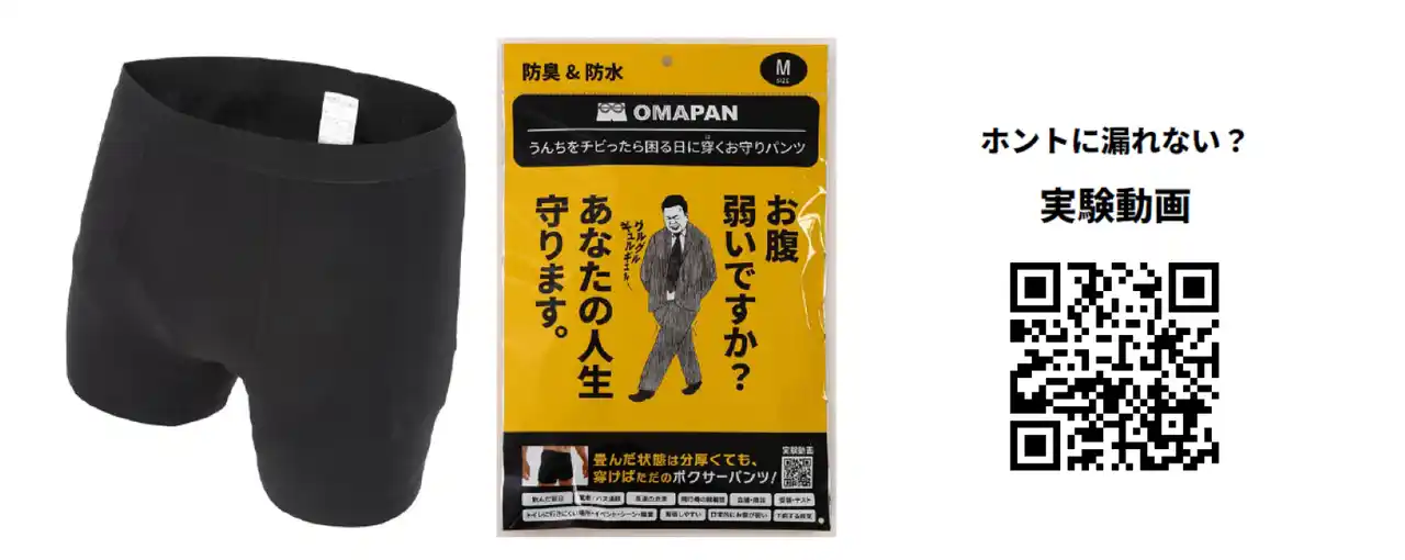 もしトイレ(大)に失敗しても、悪臭・水分を同時ブロックできる念の為に穿く「腹痛のお守り」