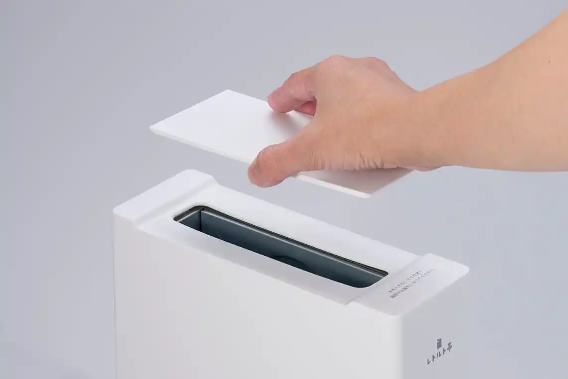 さらに、投入口をふさぐ「ふた」が付属。使用しない時のホコリの侵入を防ぎ、衛生的に保管できます。 |