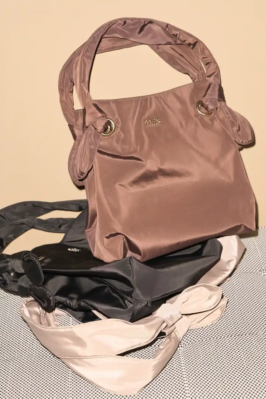 リボン結びデザインが印象的なトートバッグは、柔らかく持ちやすいふくらみのあるハンドルと軽量設計で長時間の肩掛けも快適に使え、広めの底マチによる抜群の収納力でA4サイズにも対応し、ママさんバッグから通勤バッグまで幅広く活躍します。 |