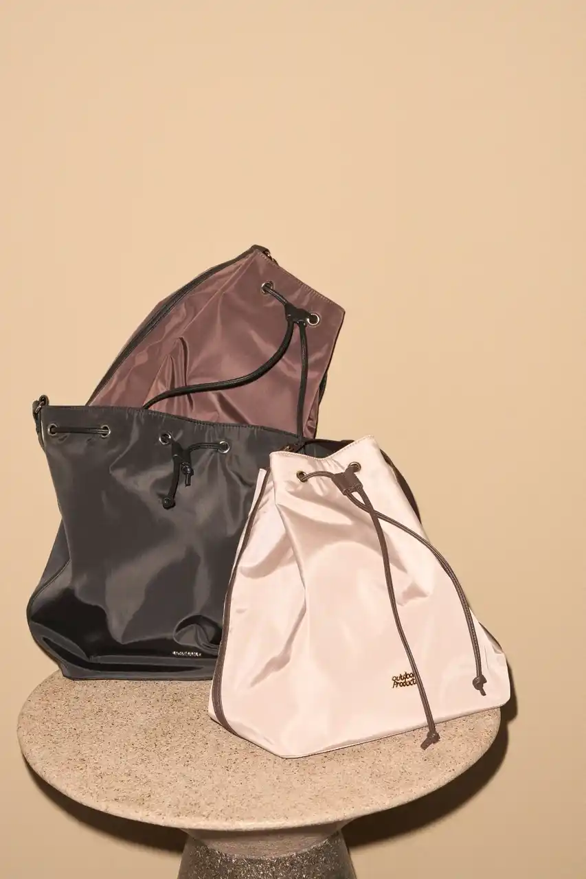 「Refind Line」は、ふんわりリボンで魅せる毎日にちょうどいい大容量トートと、上品さと機能性をひとつにした巾着デザインのショルダーバッグの2型。 |