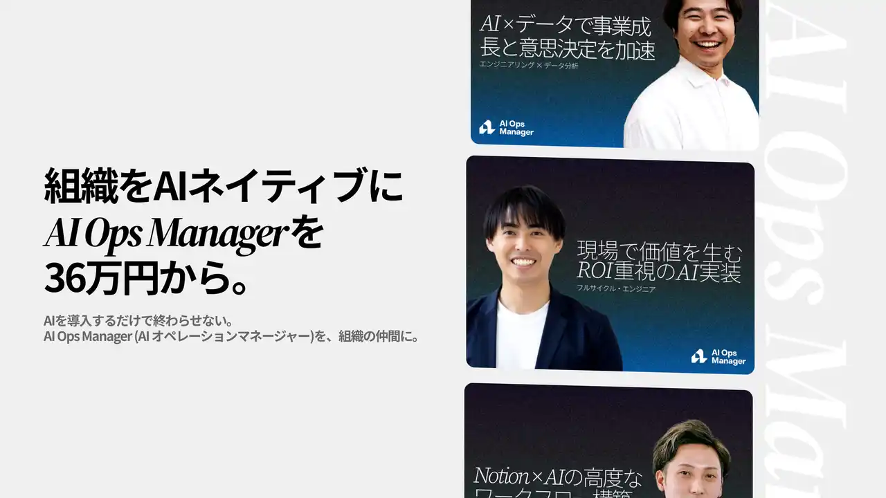 AI Ops Managerは、欧米を中心に広がっている組織と業務をAI化を推進する役職です。業務を理解し、AIで代替・自動化できるポイントを特定し、実際に手を動かし組織に定着させる── コンサルでも、ツールベンダーでもない組織に入り込む実行型のAI推進担当です。 |