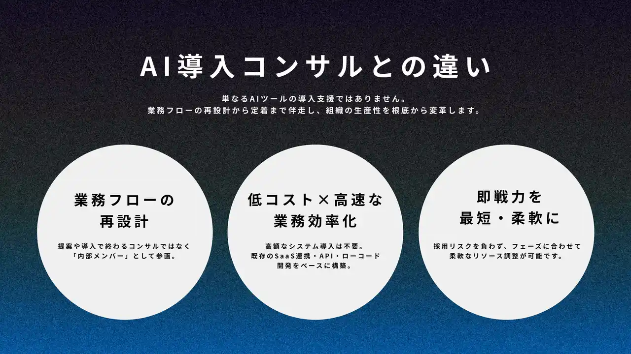 「社内のAI推進を任せたい」「実務レベルで入ってほしい」という相談が寄せられています。 |
