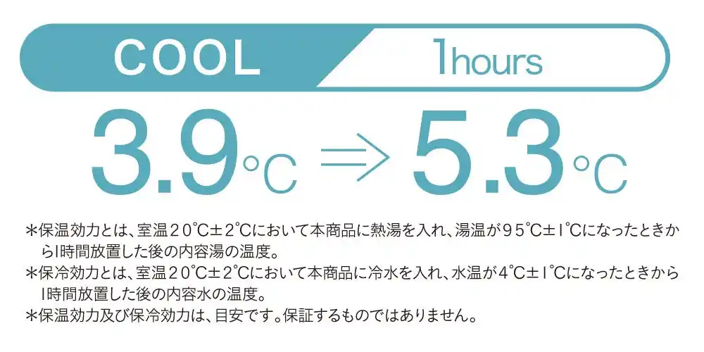 保冷効力:3.9℃ → 5.3℃(1時間) |