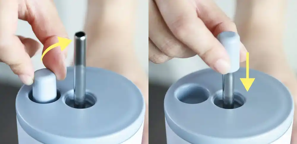 ストロー付きでありながら、持ち運ぶときにはキャップを閉じて完全密閉にできる構造です。 |