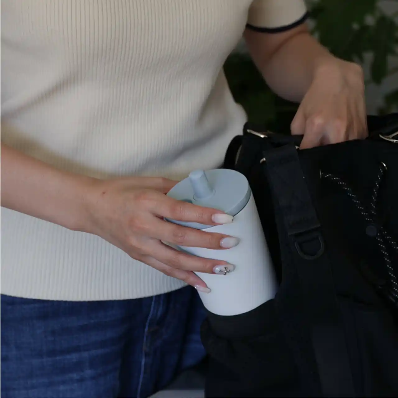 飲み終わった後はキャップを閉めて持ち運べるため、 バッグの中でも中身が漏れにくく、安心して携帯できます。 |