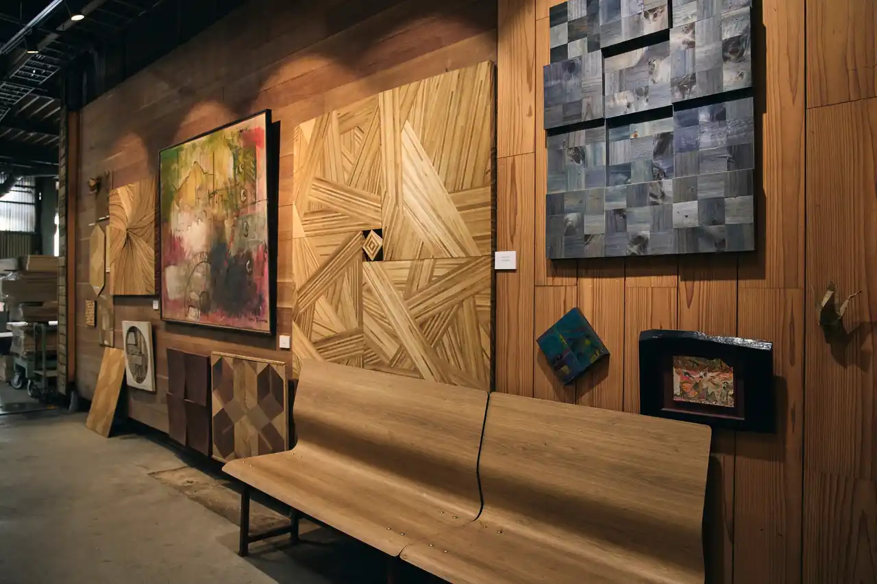 天然木の端材を活かしたアップサイクル発想と、日本の薄突き技術・職人技術を組み合わせた独自のアート作品が、海外のデザイン・アート関係者から注目を集めています。 |